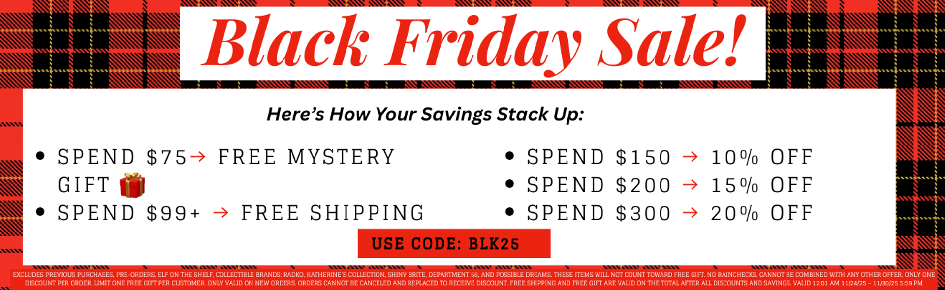 Black Friday Sale! Save Up to 20% Off + Free Mystery Gift + More Use Code:BLK25 * Some Exclusions Click HERE For DetailS | PLUS Free Shipping On Orders of $99+ |