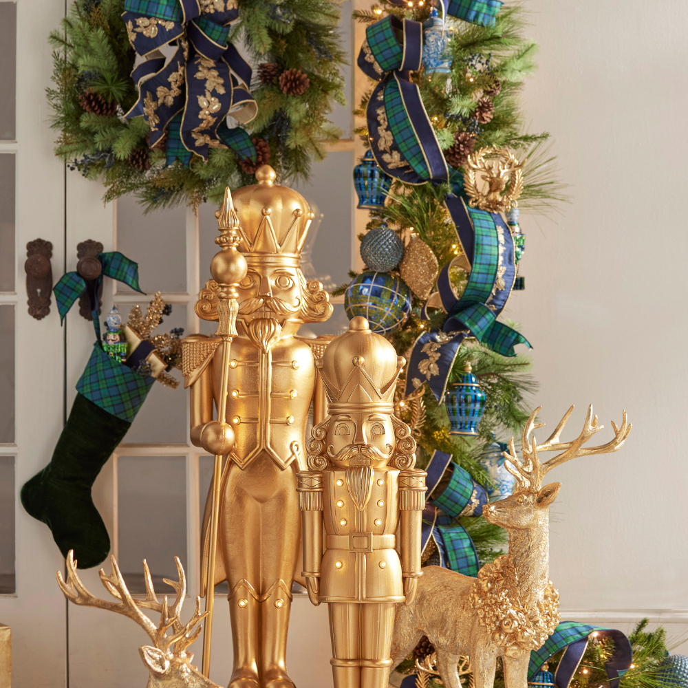 Gold Nutcracker Figures: Add regal charm to mantels or entryways.