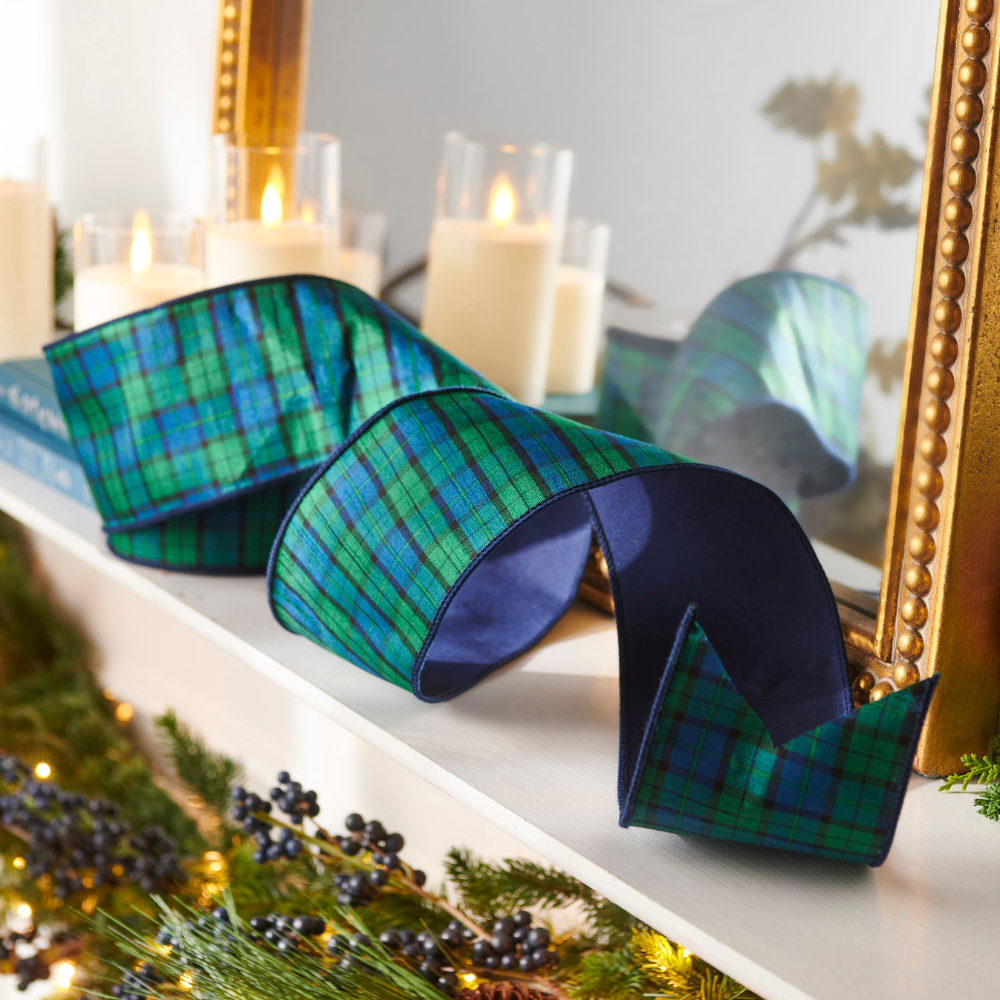Green & Blue Tartan Ribbon: Perfect for garlands, wreaths, or tree bows.