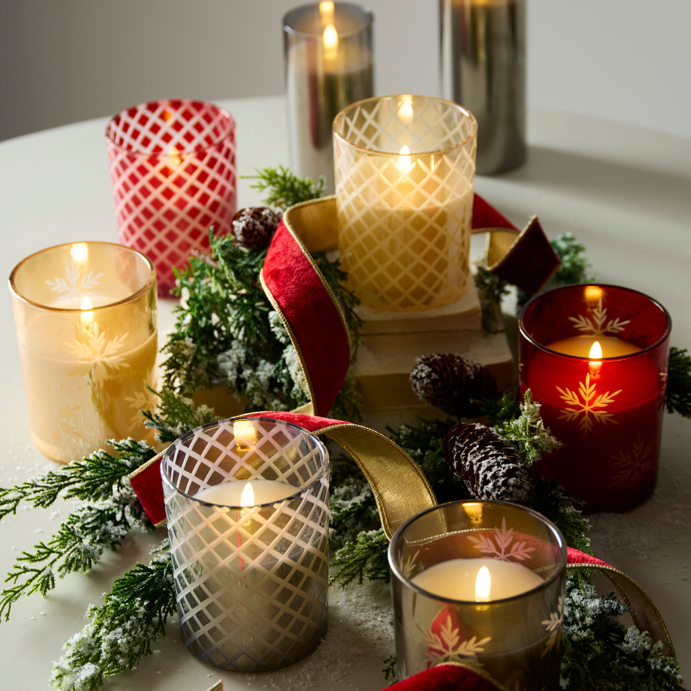 Classic Candlelight: Etched glass or metallic votives cast a golden, nostalgic glow.