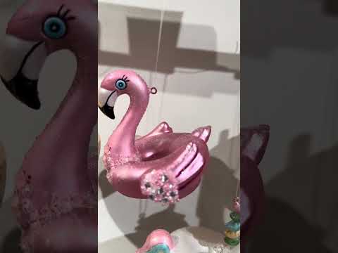 This adorable ornament features a clear glass house with gold metallic trim and two bottle brush trees decorated with colorful ornaments flanking the front door!