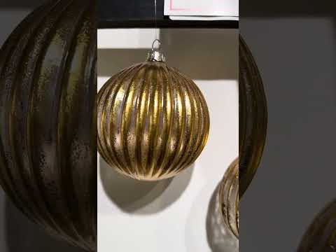 Add a few of these stunning ornaments to your tree this holiday season! Each one is made with silver glass and a ribbed design with champagne glitter dusted on the edges!&