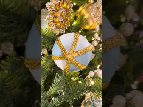 Party like Gatsby this holiday! This stunning ball ornament features a white ball with gold embroidery string and tiny gold sequins with jewels in a classic scal