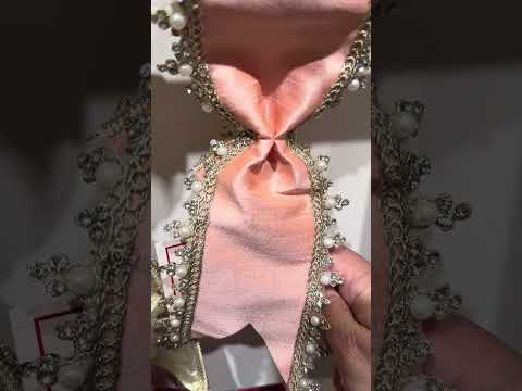 This stunning ribbon feature pale pink with a gold embroidery on the edges! It's the perfect ribbon to layer on larger ribbon or use to tie some small Christmas bows! Made by Raz Imports...